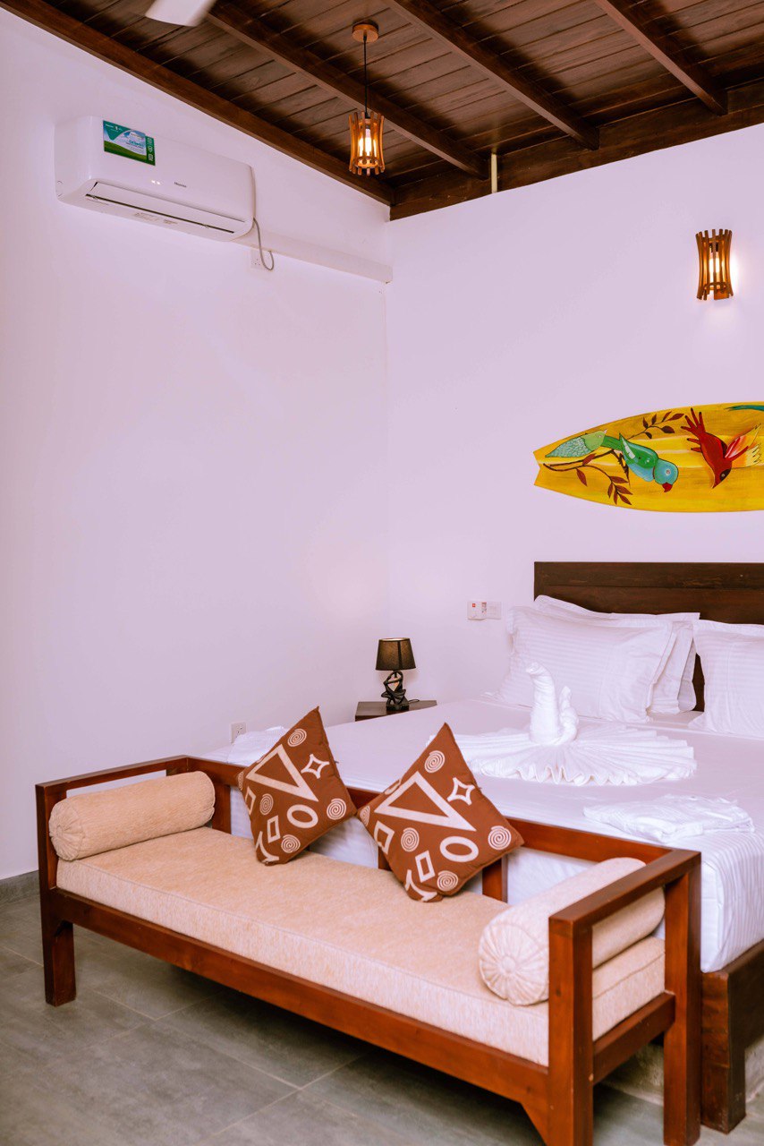 For travelers looking for eco-luxury accommodation, NatureSurf Villas Hiriketiya is one of the best options. Located just steps from the surf, the villas offer beachfront stays in Sri Lanka with organic dining from their own garden, yoga and wellness retreats, and modern comforts combined with sustainable living. It’s the perfect balance of surf, relaxation, and authentic island lifestyle.